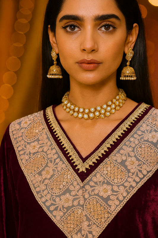 -44% OFFMaroon Embroidered Velvet Co-ord Set